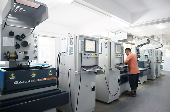 先进数控加工中心机、高速数控精雕机、数控放电加工机、精密线切割等完善各段加工设备制造